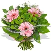 Уменьшенный: гербера розовая - 1 шт, хризантема кустовая зеленая - 3 шт, рускус, берграсс, розовый фетр. Примерный диаметр букета 25х25 см.