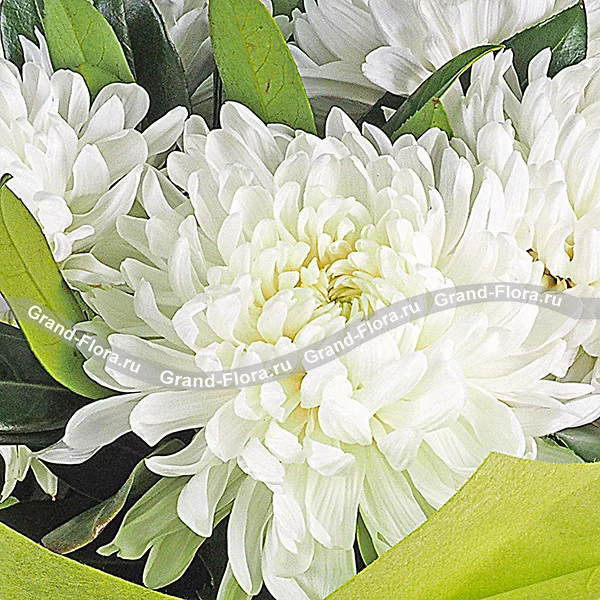 Элегантный букет из белых хризантем - это классическое цветочное произведение, которое никогда не потеряет своей актуальности и всегда будет радовать изысканной и такой нежной красотой.